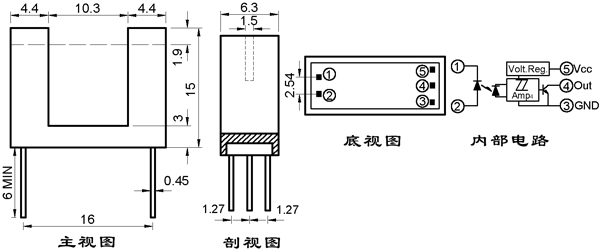 一、特点: ● 单光束施密特三极管集电极开路输出 ● 防尘结构设计。 ● 光缝宽度(分辨率):1.5mm;光轴中心:1.9mm。 ● IT1102FL 为通光低电平输出。