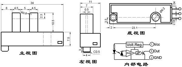 ● 光缝宽度:0.5mm;光轴中心:2.3mm。