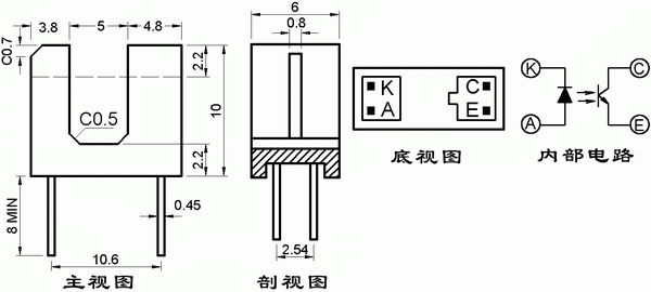 ● 光缝宽度:0.8mm;光轴中心:2.2mm。