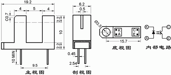 ● 光缝宽度:0.5mm;光轴中心:2.2mm。